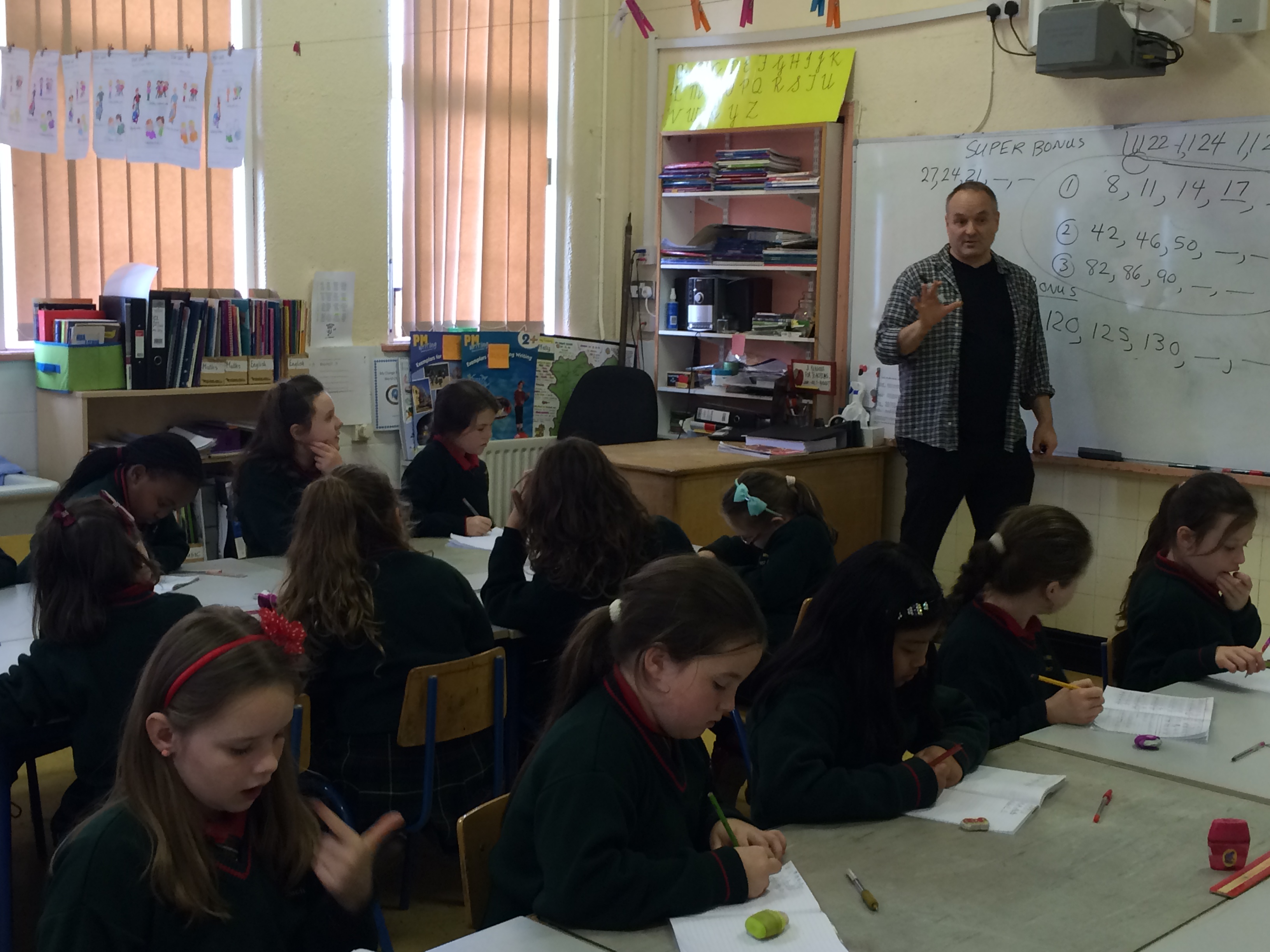 Third class had the opportunity of a lifetime this week when they were given a masterclass in maths from the master himself. Dr. John Mighton is a mathematician, author, and playwright. He founded JUMP Math as a charity in 2001 to enhance potential by encouraging an understanding and love of math in students and educators. JUMP Math produces evidence-based classroom math programs that are used by about 140,000 students including the students of Scoil Mhuire. If you would like to get some more information on JUMP maths check out http://www.jumpmath.org.