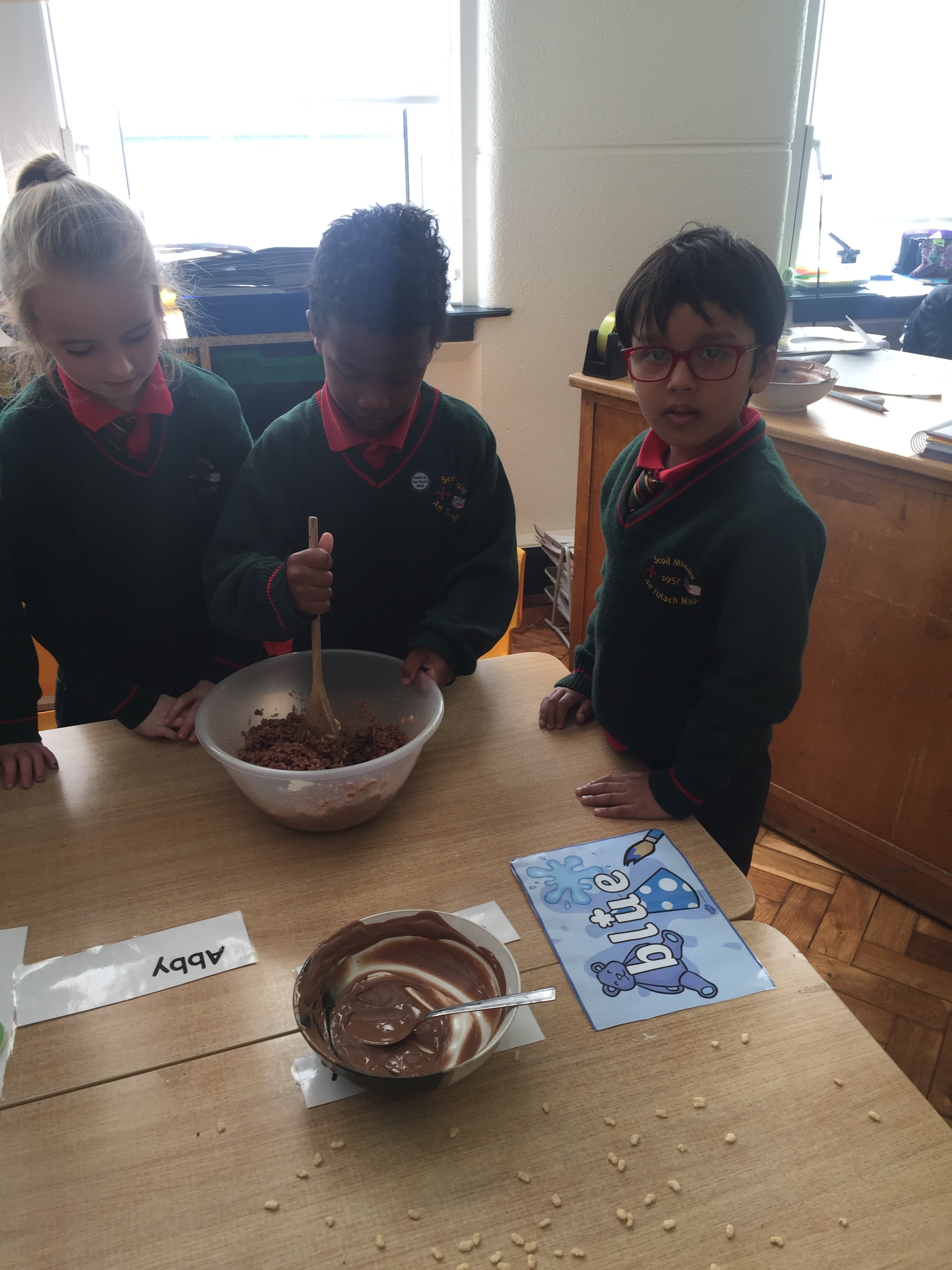 It is all about Halloween in Aistear this week and the children had a wonderful time getting into character! The students of Ms. Conroy’s class then discovered that maths is even a part of creating Rice Krispie treats!! That is the kind of maths that we all LOVE!!