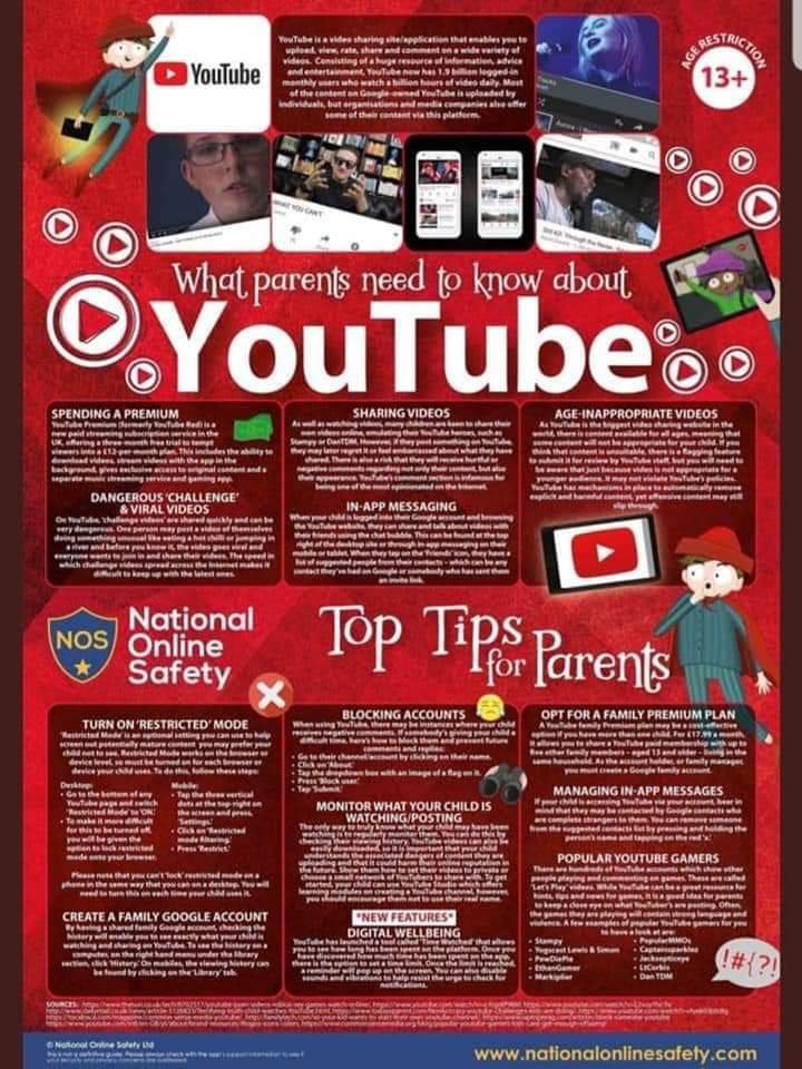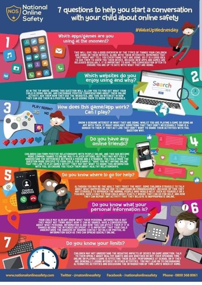 In light of the current inappropriate on line challenges making the news this week- these are a few posters that will ensure your children remain safe on their device at all times. Note the age restrictions on many of these Apps.